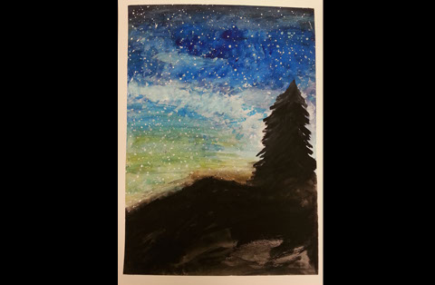 Silhouette and Starry Night Watercolor Painting. Spring 2015. Prints available upon request. Experiment is different watercolor techniques and how to create silhouettes.