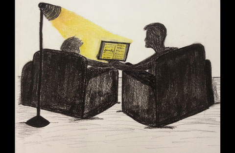 Original Chalk Illustration made for Library Poster. Spring 2014. Library theme of reading with the family.