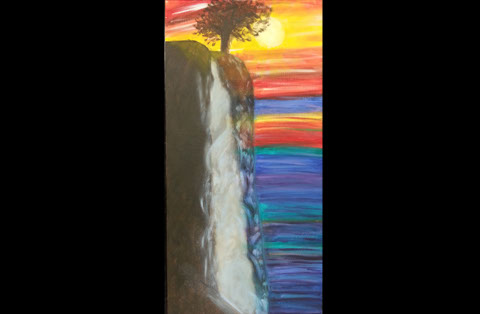 Waterfall Oil Painting. Spring 2015. Prints available upon request. Study of Leonid Afremov's style paired with water effect and silhouette.